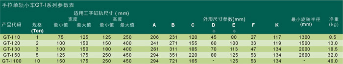 艾培尔GT-1型安全型手拉单轨小车参数: