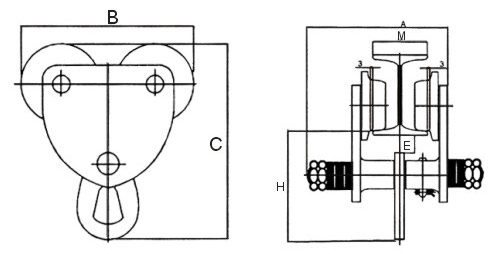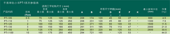 艾培尔PT-1型安全型手推单轨小车结构图: