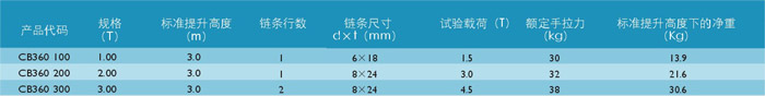 艾培尔CB360型专利型360度旋转手拉葫芦参数: